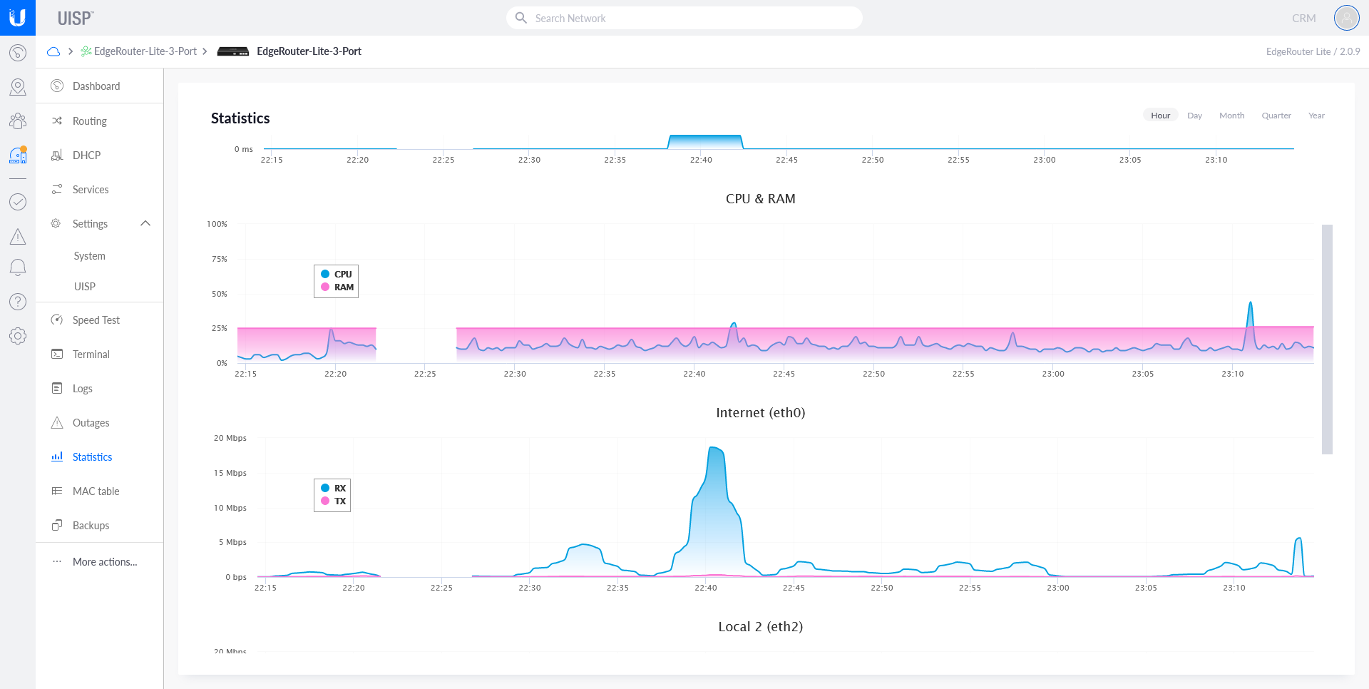 UNMS에서 장치의 CPU 및 RAM과 인터페이스별 트랙픽 확인이 가능 UNMS는 제품 라인(airMAX, EdgeMAX, airFiber (and more!))에 상관없이 한곳에서 관리 할 수 있는 서비스로 보인다.