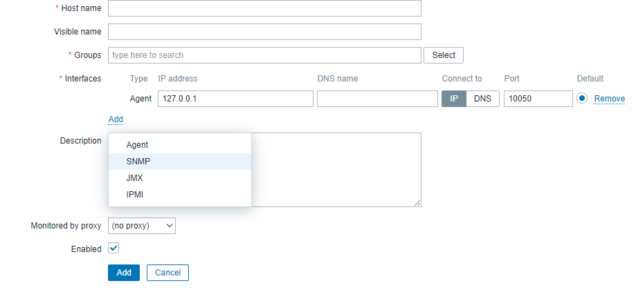Zabbix 설정 - 호스트 추가