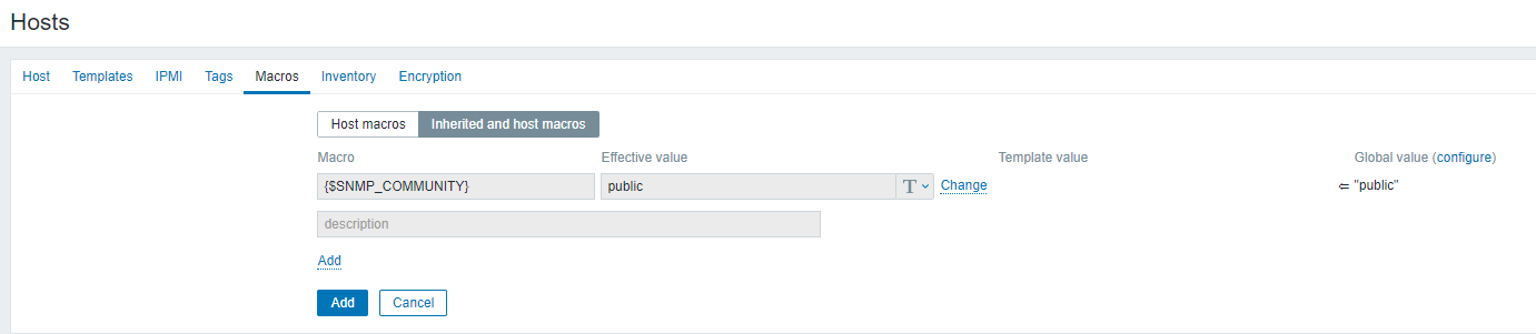 SNMP community 항목은 환경변수 값을 가져와도 되고, 직접 public 이라고 입력해도 된다.
