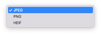 이미지 변환 포맷은 PNG, JPEG, HEIF 를 지원