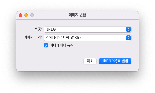 Mac (12.6) 에서 HEIF 사진을 별도의 프로그램 설치 없이 jpeg 또는 다른 포맷으로 변환 변환이 가능