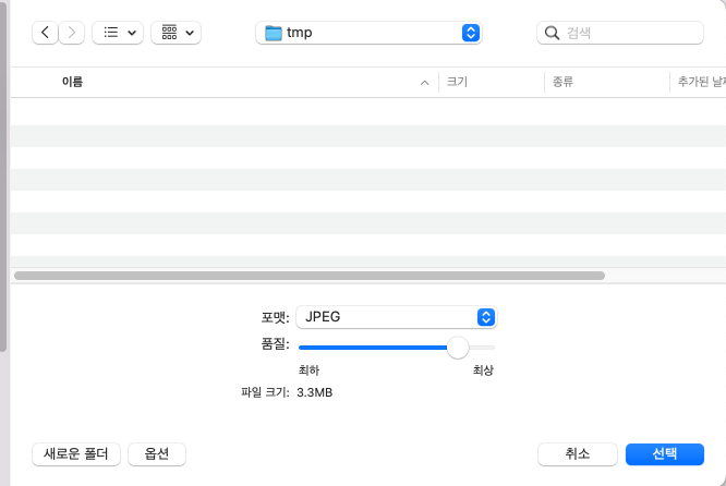 Finder에서 이미지 변환 보다 미리보기 앱을 통해서 더 많은 포맷으로 변환이 가능