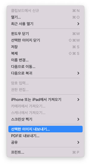 3. 파일 메뉴에 선택한 이미지 내보내기를 선택
