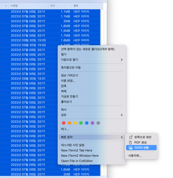 Finder 빠른 동작 메뉴의 이미지 변환